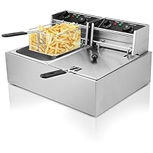 Comprar EBTOOLS 6L x 2 Doble Cilindro Profundo Freidora Eléctrica con Limitador de Temperatura Comercial Profesional Acero